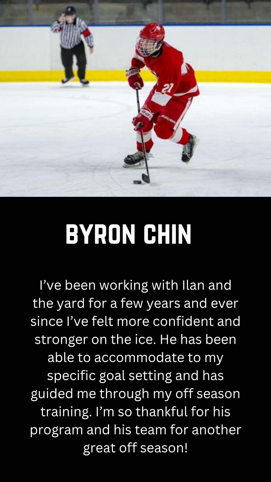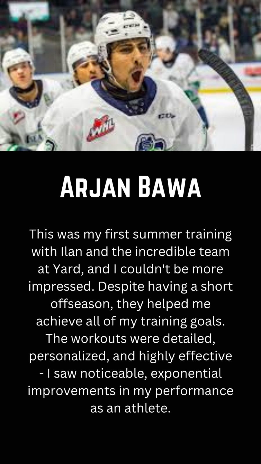 After an extensive playing career which took him through the Minor Hockey, Junior, and University ranks, eventually culminating in the professional ranks of Europe, Ilan Cumberbirch seamlessly transitioned into the realm of off-season Strength & Conditioning, working with NHL, College, and Junior players. Armed with a Bachelor's Degree in Kinesiology and Certified Strength & Conditioning Specialist credentials, Ilan brings a wealth of expertise and first hand experience to Yard Athletics.